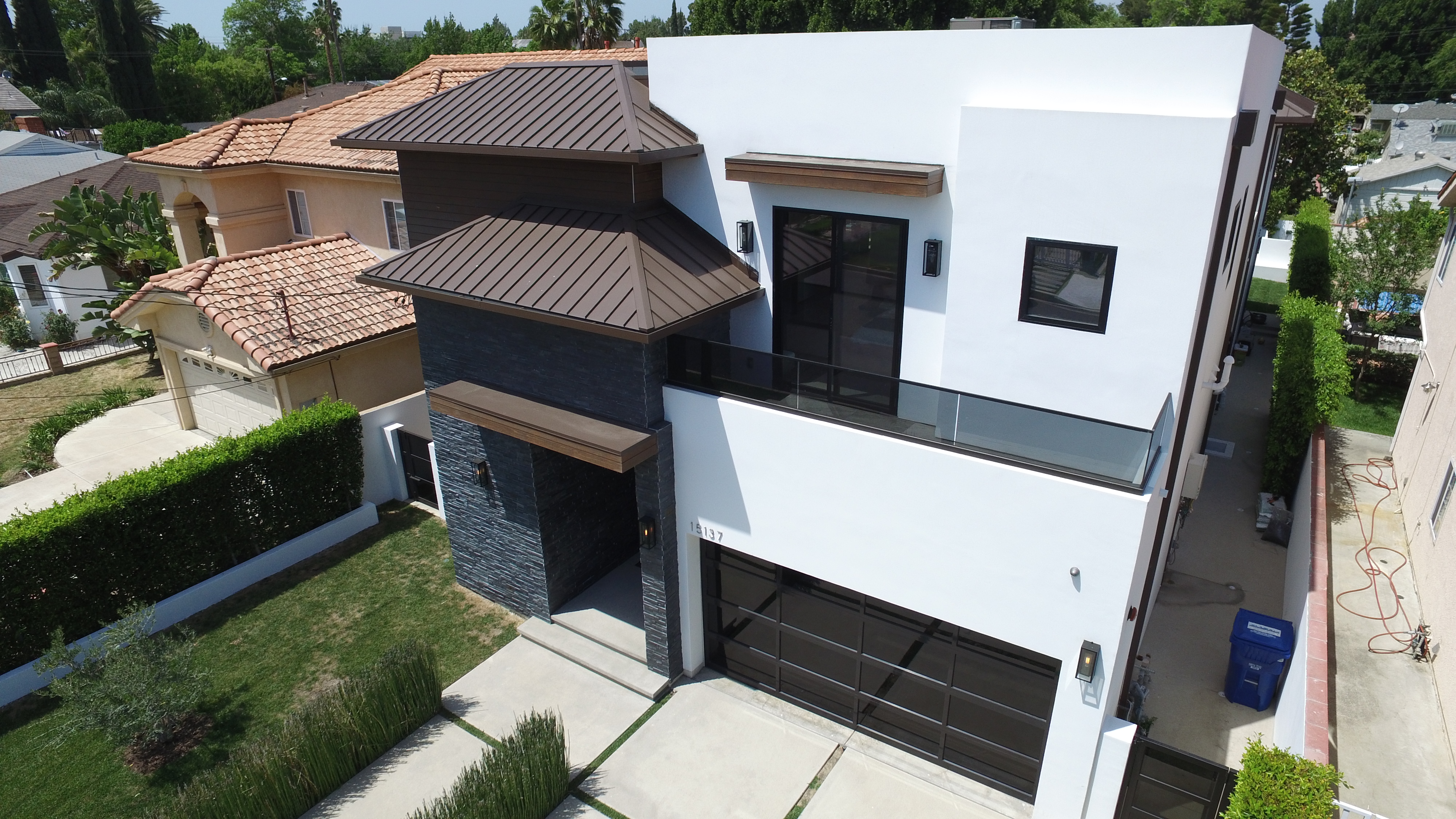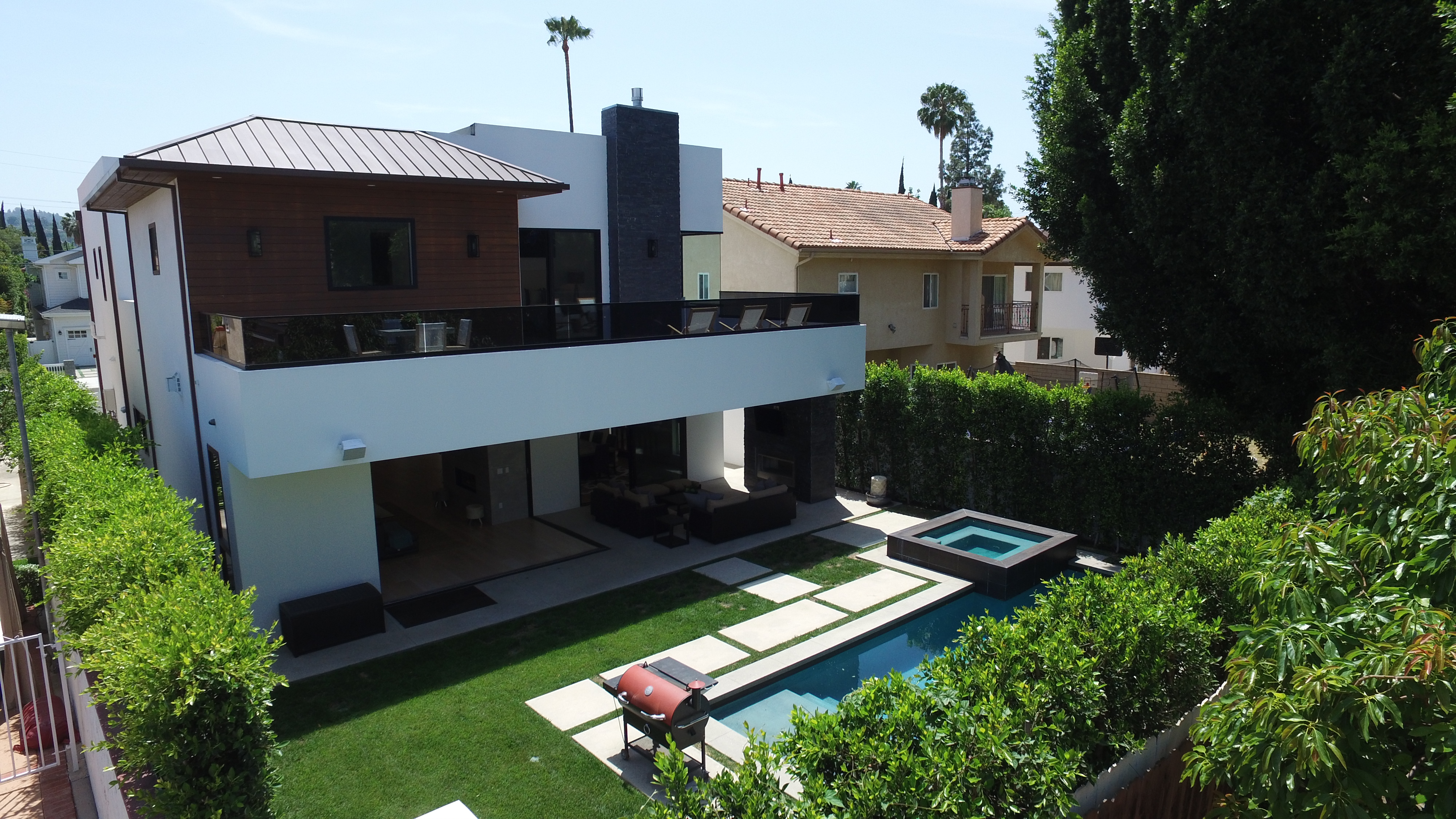 Gorgeous and Modern 5 bed, 5.5 bath home located in sought after Sherman Oaks neighborhood. This beautifully constructed home boasts structural clarity and rational simplicity. With 4,239 square feet of living space and high ceilings, the pristine flowing design welcomes abundant light and spacious rooms while successfully bringing the outdoors in with large sliding glass doors. There is a large dining room, kitchen with top-of-the-line appliances, and a living room that leads to a secluded backyard oasis with pool and spa.